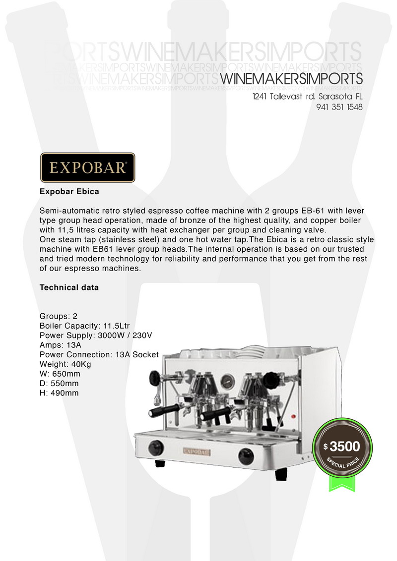 exchanger group and cleaning valve. One steam tap (stainless steel) and one hot water tap. The Ebica is a retro classic style machine with EB61 lever group heads. The internal operation is based on our trusted and tried modern technology for reliability and performance that you get from the rest of our machines.